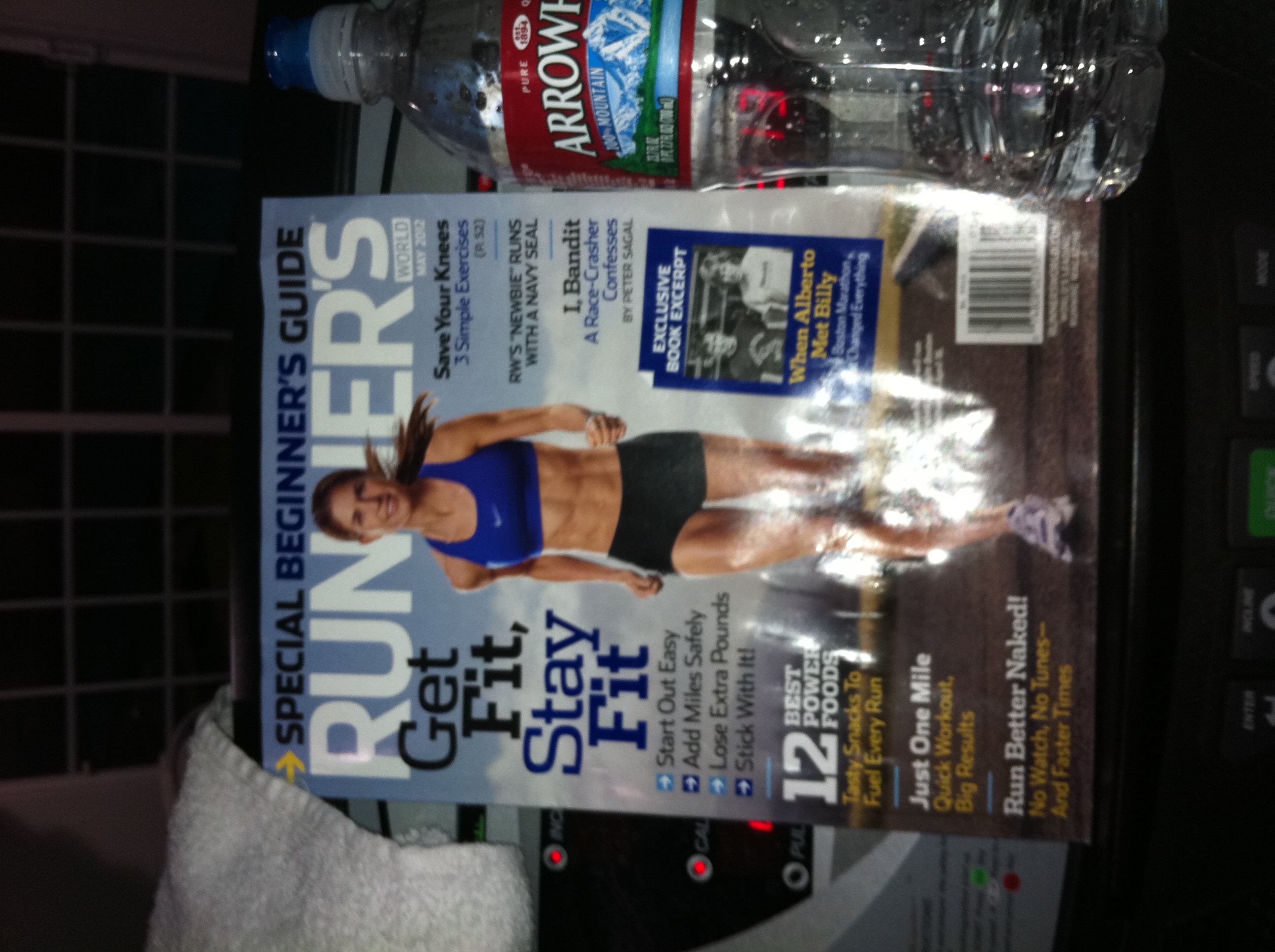 I usually watch tv and listen to my iTunes as I run. I also like to read Runner’s magazine. The latest issue has a Guide for Beginning Runners which was pretty good.